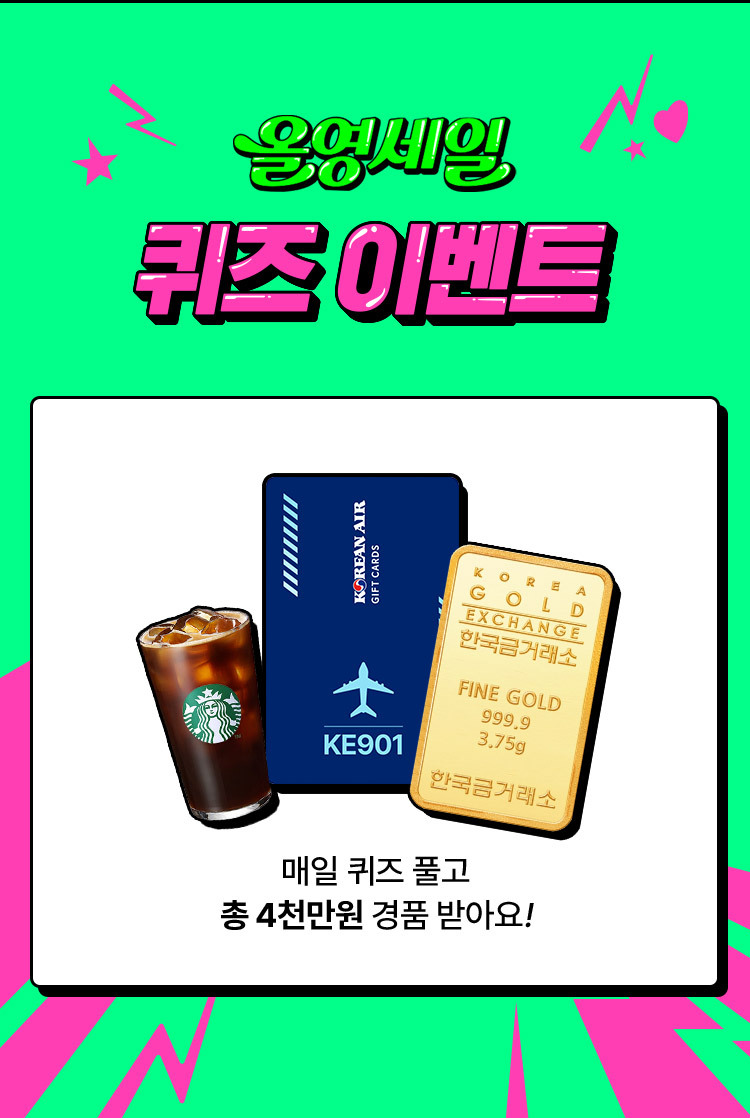 - 매일 공개되는 OX 퀴즈에 참여하면, 총 4천만 원 상당의 적립금 및 경품이 제공됩니다.